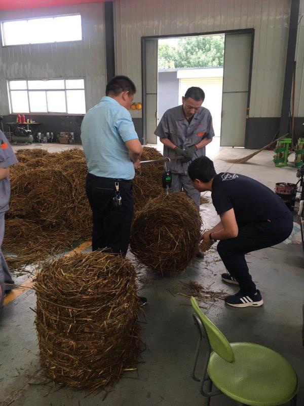 鑒定檢驗人員要求對機器進行連續工作18小時測試,必須保證工作期間零故障率,這是對機器本身的質量和操作人員的檢驗,并進行了現場草捆稱重,檢驗草捆含水量,每包草捆的重量是否均勻,尺寸是否一致。